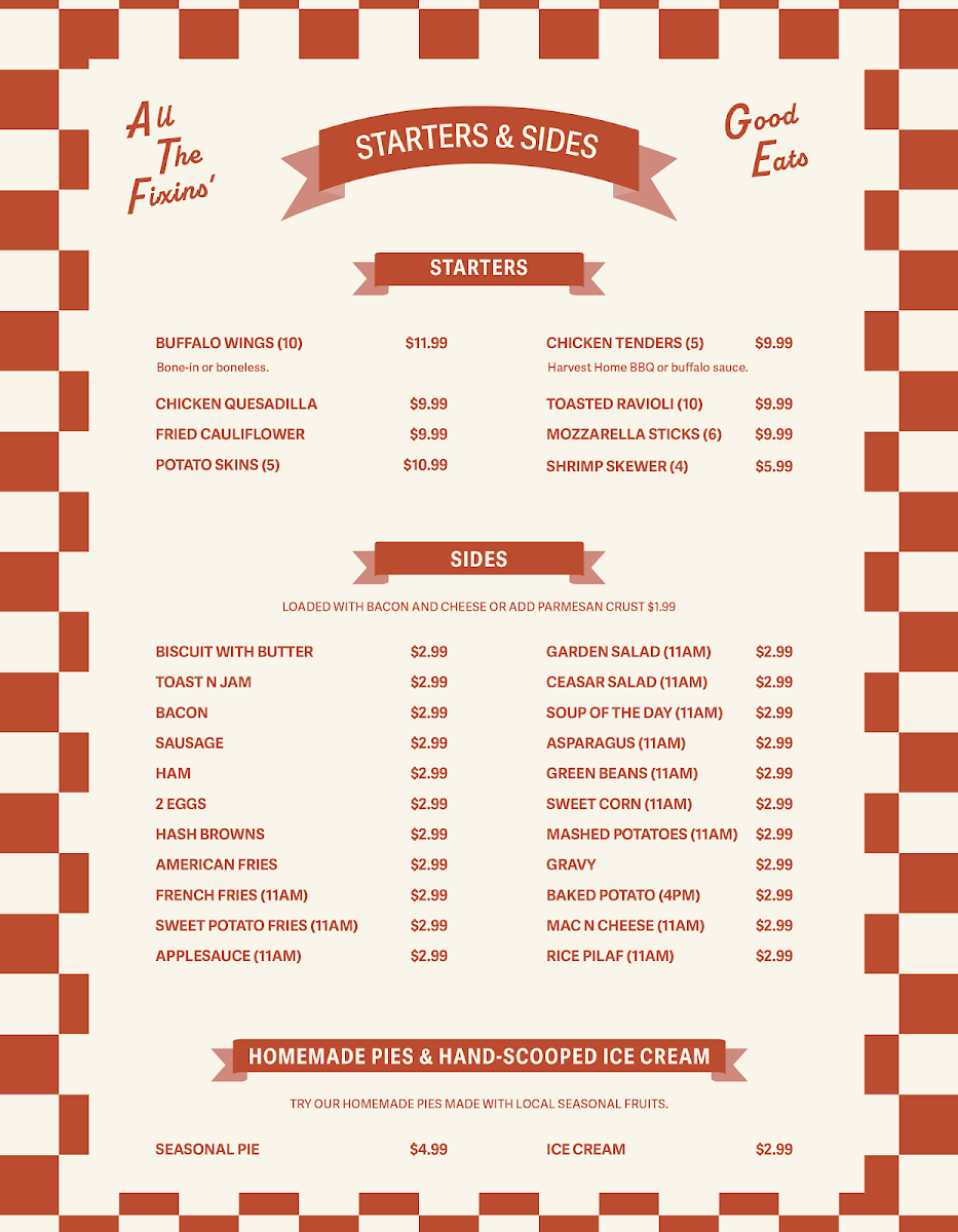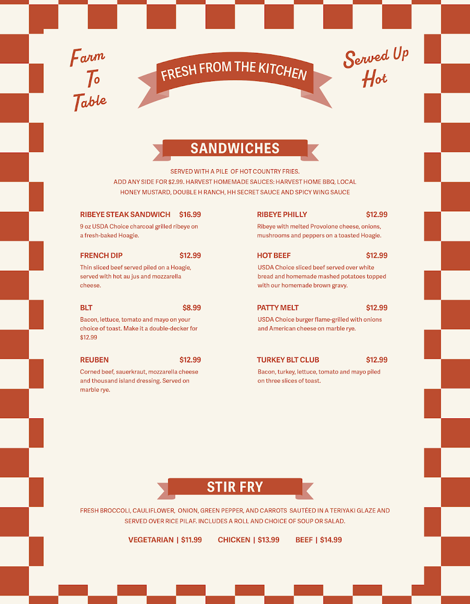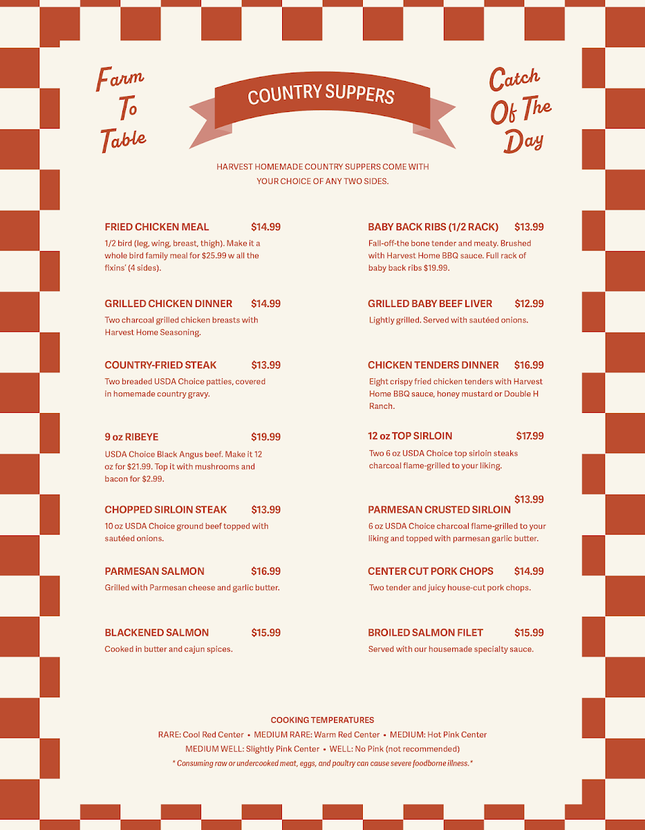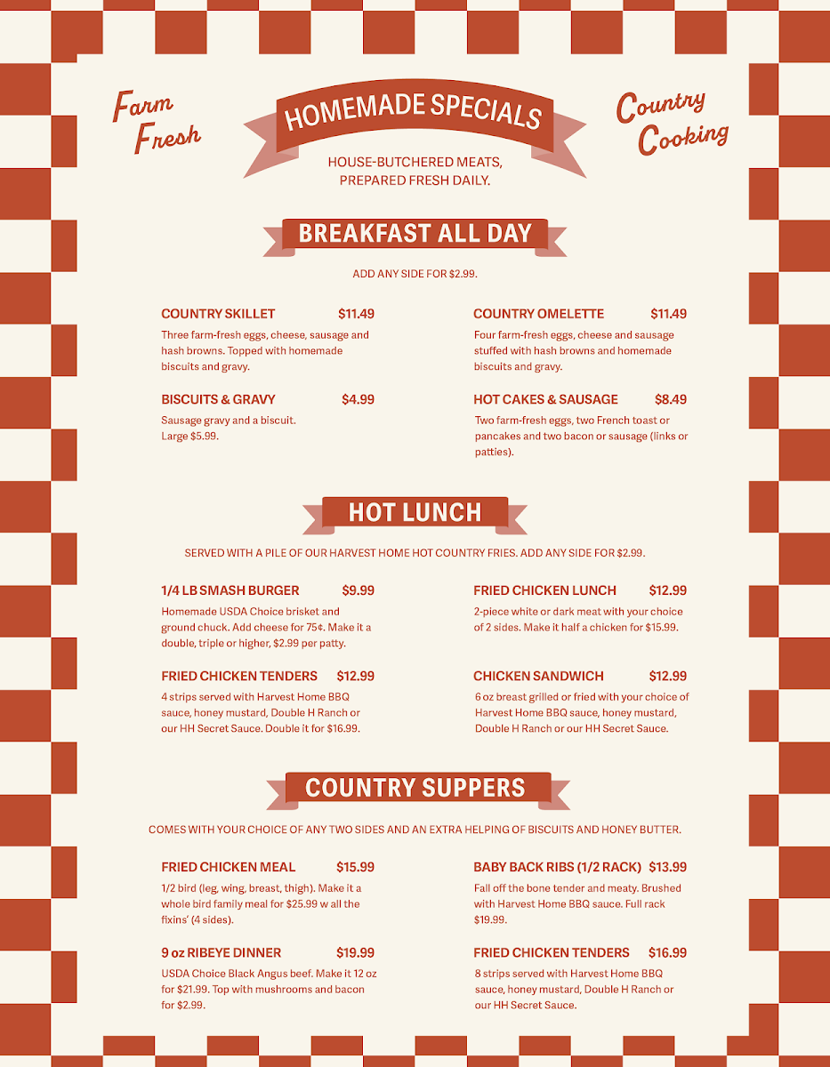 Harvest Home Restaurant Menu